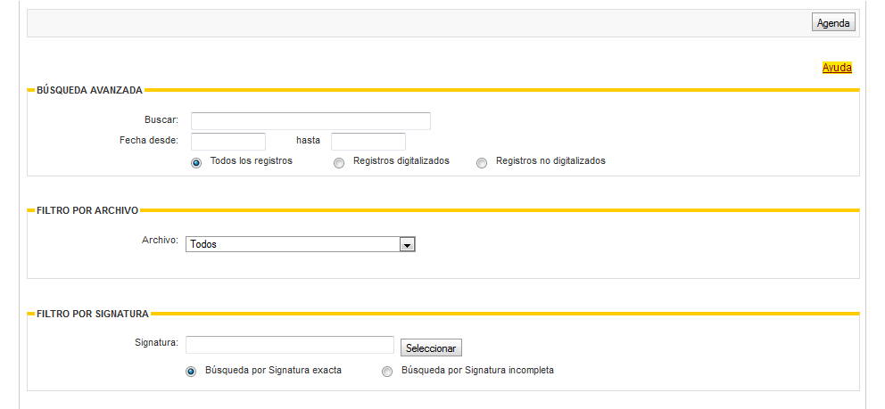 So at the top, you’ll notice a menu that should look like the below. Click on the image to make the view larger and then hit escape when your done viewing; from a laptop/computer. For this blog post, we are going to concentrate on simply getting to the San Lorenzo 1884 Census; I’ll talk about PARES itself on another post. Click on Busqueda Avanzada which means Advance Search.
